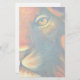 Papel de papelaria com óleo pintado de imagem digital de um fecho de uma face de leões, com olhos amarelos piercing. As cores dominantes incluem laranja e amarelo. Parece orgulhoso, real e feroz.