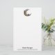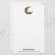 Papel de carta com uma bela ilustração. Um rosto feminino na lua rodeado de flores.
