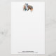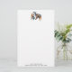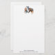 Papel de carta com um belo desenho de aquarela. Com um par de cavalos, castanho e branco. Cabeça e pescoço visíveis com tinta pingando na base do pescoço. Vírus sudoeste.