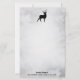 Papel de papelaria com uma imagem com uma rena de silhueta preta com grandes galhadas. fundo de cor d'água da cinza.