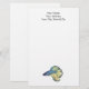 Uma pintura de tinta aquosa de um peixe brilhante, azul e Dourado, Betta Splendens, enfeita este papel de carta personalizável!