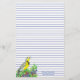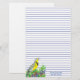 Um papel de papelaria revestido com o canto de Meadowlark Ocidental enquanto ele toca em um arbusto de Grape Oregon inspirado pelo State Bird and State Flower do Oregon desenhado com caneta e tinta pretas e pintado com aquarela.