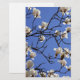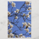 Design apresenta uma bela imagem de flores brancas de magnólia em floração contra um fundo azul-céu.