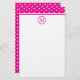 Esta papelaria de monogramas fofinhos apresenta bolinhas brancas pré-disquete em um fundo rosado brilhante sólido. Personalize o monograma cor-de-rosa e branco correspondente com a sua escolha inicial.