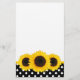 Um padrão bonito de bolinhas preto e branco com girassóis é apresentado nesta papelaria floral.