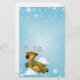 Uma bela imagem de desenho animado de uma adorável rena de natal voando no céu com flocos de neve e nuvens ao fundo.