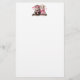 Papel de carta com uma ilustração fofa. Um par de lontras em roupas cor-de-pessoas rosa. Vestir camisas riscadas e vestir uma gravata e a outra vestir uma arco. Envolvido por corações amorosos.