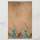 Um lindo design de renda falso, este papel de carta apresenta um fundo de bronze com flores azuis no fundo. Personalize seu nome e texto no topo. Compre o seu hoje!