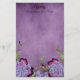 Um bonito papel de papelaria roxo com um design floral roxo e verde, personalize seu nome e personalize seu texto. Compre o seu hoje!