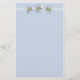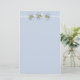 Um bonito papel de papelaria azul macio com três flores margaridas desenhadas a lápis e a aquarela.