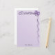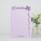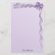 Papel de carta com fitas roxas e arcos cortados na borda superior e direita sobre fundo violeta. Em "Personalizar", preencha os campos de modelo com suas informações, remova o texto ou clique em "Personalizar!" para selecionar um estilo de fonte, tamanho e cor preferidos. Nos campos modelo, você pode colocar um verso, slogan ou provérbio.