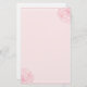 Pique brandamente o papel estacionário colorido acompanhado de dois rosas cor-de-rosa gravados de florescência bonitos que florescem nos cantos da parte superior e da parte inferior.