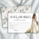 Na moda elegante design com noiva de aquarela em seu vestido de noiva, tipografia moderna e flores em maríblia de trás.O texto pode ser facilmente personalizado para um único design único para seu dia especial.