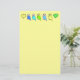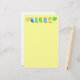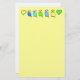 Papel de carta amarelo com parakeets cartoonish e corações verdes e amarelos
