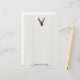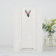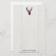 Papel de carta com cabeça de cervo preto feito com linhas geométricas e vestindo uma coroa floral rosa. Design russa e de tendências. O fundo é uma imagem digital de tábuas de madeira de cor bege macio. Personalize com um nome e endereço.