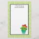 Papel de carta com seu nome personalizado. Uma bela ilustração de um cacto verde sentado num pote de flores. Grandes olhos kawaii e vestindo um sombrero vermelho. O plano de fundo é um padrão com espirais de verde limão com um quadro branco sobre o topo para o dentro de escrevendo.
