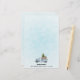 Papel de papelaria com design festivo. Um caminhão carregando pinheiros de Natal junto com alguns animais da floresta. Um urso, uma raposa e um veado nas costas, indo dar uma volta. Design criado com aquarelas.