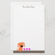 Artigos de papelaria doces personalizados com seu nome. Flores alaranjadas bonitos do cão e do coração.