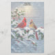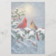 Um par de cardeais vermelhos nortes perch em um galho sagrado coberto de frutas vermelhas e neve.