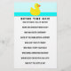 Atividade exclusiva de jogos de chá de fraldas, com bonitinha arte em patos de borracha, um teste de rima de creche em creche em Madre Goose, e um lugar para incluir conselhos de parentalidade.