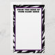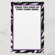Papel de carta com borda de impressão zebra com caimento roxo. Texto no topo. A linha 1 lê "Da mesa da" Linha 2 lê "Seu nome aqui". Todo o texto pode ser personalizado. Se quiser alterar o tamanho, estilo ou cor da fonte, você pode usar a ferramenta design