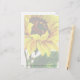 Bonito papelaria floral feita em branco, com gráficos esbatidos de um grande girassol amarelo tomando a página inteira. Papelaria adorável do dia a dia ou para ocasiões especiais. Personalize o texto verde escuro, no pé da página, para atender às suas necessidades. Faz um belo presente também.