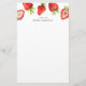 Papel de carta personalizado bonito com seu nome, com uma ilustração de cor d'água dos morangos.