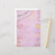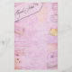 Papel de viagem com fundo cor-de-rosa e creme com mapas desbotados, marcas de água, marcas de cancelamento e carimbos. Perfeito para o viajante. Notas de viagem na fonte do script em etiqueta de bagagem cor-de-rosa.