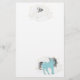 Unicórnio e nuvem com estrelas ouros. Nome personalizável. Um papel de carta bonito para crianças.