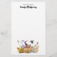 Papelaria personalizada com uma bela imagem de uma casa de abóbora assombrada com um chapéu de bruxa no topo e fantasmas e morcegos voando por aí.