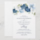 Adicione facilmente seus detalhes de casamento a este lindo modelo floral azul elegante clicando no botão "Personalizar". Apresentando floral azul com folhagem verde e tipografia moderna sobre fundo branco. Altere completamente o plano de fundo clicando no botão "Personalizar"