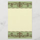 design de papelaria casamento vintage com um embelezamento detalhado de rolagem metálica dourada sobre cima e baixo sobre um fundo verde. A cor central é um marfim clássico. Este design também vem em várias combinações de cores e em muitos outros produtos de papel e também postagem para atender a todas as suas necessidades de casamento.