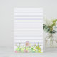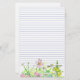 Uma bonito papelaria forrada floral com uma fronteira de flores silvestres, incluindo chamomila, pinks e snapdragões amarelos, com uma abelha visitada desenhada a tinta e com aquarela. Bonito para escrevendo de cartas, registro, listas e muito mais.
