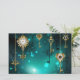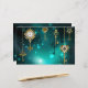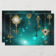 Chaves Douradas e antigas com engrenagens e marcadores penduram em correntes douradas sobre fundo verde luminoso.