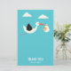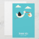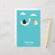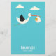 Papel de carta personalizado com uma cegonha preta e branca a dar um bebê. © Humor 4 Cuz
