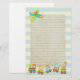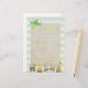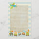 Papel de papelaria ligado a um tema de viagem e transporte. Projetado com o Design com ilustrações de arte infantil temática para crianças fofinhas de um pequeno cão andando em um avião e um trem de brinquedo cheio de bichos. Colocado sobre um fundo listrado de creme e azul. Camadas sobre o topo são linhas de pergaminho para fácil escrevendo.