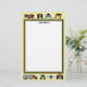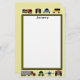 Aviões, trens e automóveis, Oh Meu Deus! Qualquer menino ficaria tão animado por ter seu próprio papel de carta monograma personalizado que está revestido com um ônibus escolar, dois carros, avião, trator, ATV, trem e um veículo de 18 rodas! A borda externa é amarela e tem uma larga faixa preta com uma fina faixa amarela dentro para parecer uma estrada. O resto do bloco de notas é branco e o nome do seu filho está no topo. O verso é amarelo sólido para que ele possa escrever uma letra também no verso. Isso daria um presente de excelente para o aniversário de um menino, para a escola ou até para adicionar a sua cesta de Páscoa!