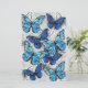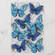 Composição vertical de borboletas de morfo realistas, azuis e brancas sobre fundo texturizado de cinzas. Borboleta azul Morpho.