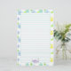 Um bonito cartaz revestido com um bule de chá púrpura lilás com flores minúsculas que saem da saliência sobre uma xadrez e fundo floral pintado em aquarela. Excelente para registro, cartas e listas a fazer!