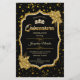 Convite de Aniversário para Quinceañera Branca, Dourada e Preta. Design com falso brilho dourado. Perfeito para uma celebração elegante e glamourosa. A fonte da quinceañera está embutida com diamantes.