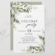 Convide amigos para comemorar a temporada com esses convites de festas de coquetel elegantes de férias verdes. Design apresenta uma ilustração aquosa de folhas verdes e flores brancas florescentes. Personalize este convite elegante com seu tipo de evento, fazer perfeito para festas, eventos corporativos, festas de coquetéis de férias.