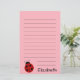 Este papel de carta tem uma joaninha bonita no canto inferior esquerdo. O papel cor-de-rosa também tem texto de exibição na parte inferior. Você pode editar o texto preto para mostrar o nome do destinatário.