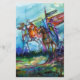Cavaleiros medievais com cavalos, pintura figurativa contemporânea colorida e expressiva em cores vibrantes azuis, vermelhas, verdes, brancas, castanhas, aquarela de Alessandro Lumini 1989 inspirada na lenda do Rei Arthur e nos Cavaleiros da Mesa redonda. Este design legal e artístico também é um belo presente para o Natal e ocasiões especiais.