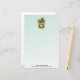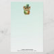 Papel de carta com uma maravilhosa ilustração química. Uma grande coruja marrom vestindo um chapéu verde rico e gravata arco.