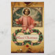 Noite de natais vintages vibrantes coloridas, Criança Jesus com cerejas voadoras, coroas florais de natal com groselhas e arcos cor-de-rosa, efeitos pergaminhos castanhos envelhecidos, pedras vermelhas 3D. Colagem digital e design por Búlgaro Lumini (c)