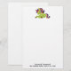 Papel de papelaria com uma imagem de um unicórnio estilo Frankenstein. Cor roxa e verde. Muito fofo.