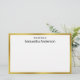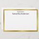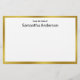 Da mesa de está perto do topo. Texto preto adicional para o seu nome está na próxima linha. Há uma borda dourada falsa (não em folha) elegante.
