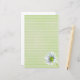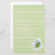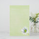 Papel de papelaria branco listrado, com uma flor de margarida branca Shasta esboçada com lápis e aquarela, sobre um fundo de textura verde macia. Uma carta alegre para escrevendo cartas, fazer jornalismo, lembretes e muito mais.