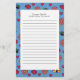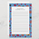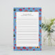 Papel de papelaria personalizado, bonito, com borboletas amarelas, flores, corações e preguiças vermelhas em fundo azul. Texto, fonte, tamanho da fonte, cor e posicionamento são completamente personalizáveis.