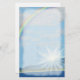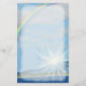 O nascimento de um novo dia: o sol da madrugada cria um arco-íris no céu. Nova vida. Novo começo. Novo emprego. A papelaria "Dawn of a New Promise" pode ser usada para celebrar a paternidade, a nova carreira, a graduação ou até mesmo a vida de um sobrevivente de câncer. A imagem mostra um arco-íris próximo ao topo da página, e raios solares quebrando acima da vista da cordilheira com água abaixo.
